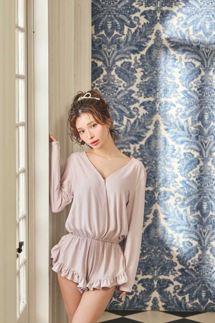 「Belle Drape Rompers」は、フリルたっぷりのドレープが美しいロンパース。LIGHTGRAYとPINKの2色展開で、価格は13,200円(税込)、フリーサイズです。