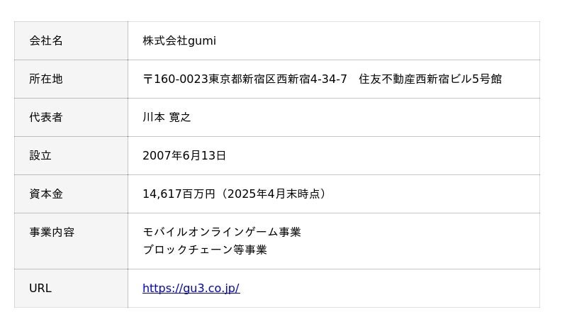 gumiは、「Wow the World! すべての人々に感動を」をMissionに掲げ、モバイルオンラインゲーム事業とブロックチェーン等事業の二つの事業を展開しています。モバイルオンラインゲーム事業では、『当社ゲームエンジン×IP』を軸とした収益性の高いタイトル開発を推進するとともに、開発受託にも注力しております。ブロックチェーン等事業では、ブロックチェーンゲーム等のコンテンツ開発、暗号資産を基盤にしたプラットフォーム構築、有力ブロックチェーンのノード運営、グローバルにおけるファンド投資等を行っております。