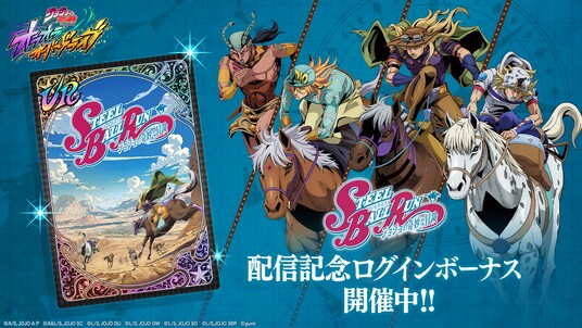 3月21日(土)より、『ジョジョの奇妙な冒険』アニメーションシリーズ最新作「アニメ『スティール・ボール・ラン ジョジョの奇妙な冒険』」の配信を記念したログインボーナスを開催いたします。