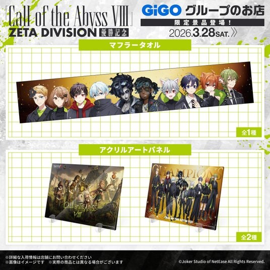 【ポップアップショップ】2026年3月28日(土)~4月12日(日)まで、全国のGiGO 2店舗にて「『Call of the Abyss VIII』優勝記念 ZETA DIVISION GiGO POP UP SHOP」が開催決定!