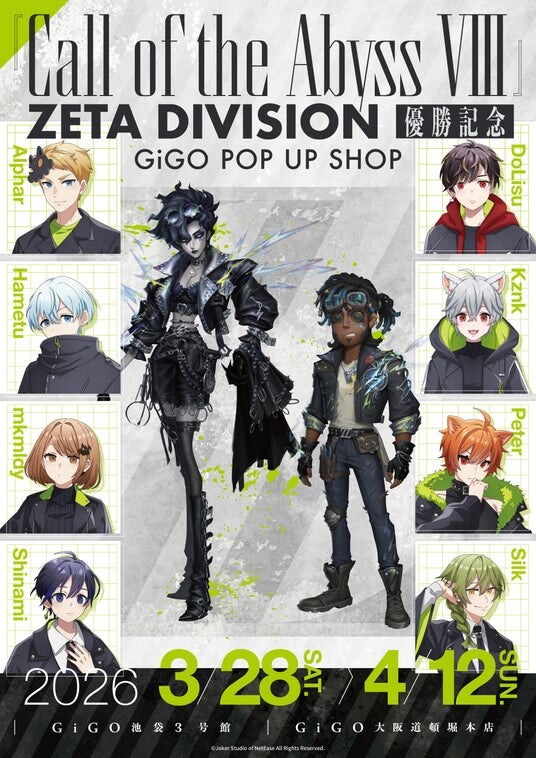 2025年5月に開催された『Identity V 第五人格』の世界大会「Call of the Abyss VIII」にて、日本のプロeスポーツチーム「ZETA DIVISION」が優勝したことを記念して、全国のGiGO 2店舗にてPOP UP SHOPが開催決定!