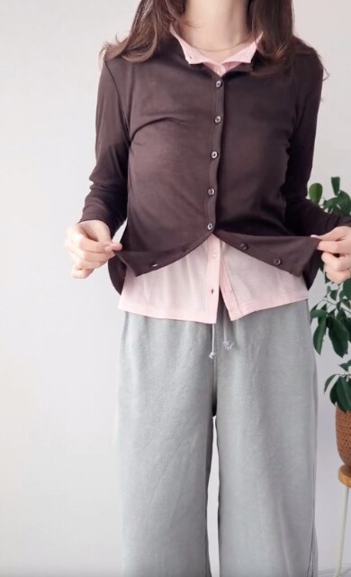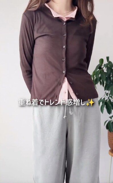 シアーアイテムを使ったレイヤードコーデの中でも、ぜひ試してみたいのが色違いを重ねたスタイリング。カーディガンを色違いで重ねることで、コーデに奥行きが生まれ、ぐっとおしゃれな雰囲気に仕上がります。