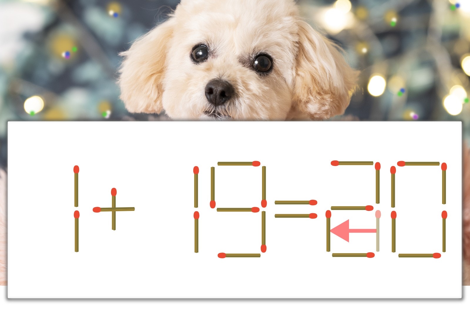 「3」のマッチ棒を1本、左にスライドさせて「2」を作り、「1+19=20」にする。※解答は複数ある場合があります。