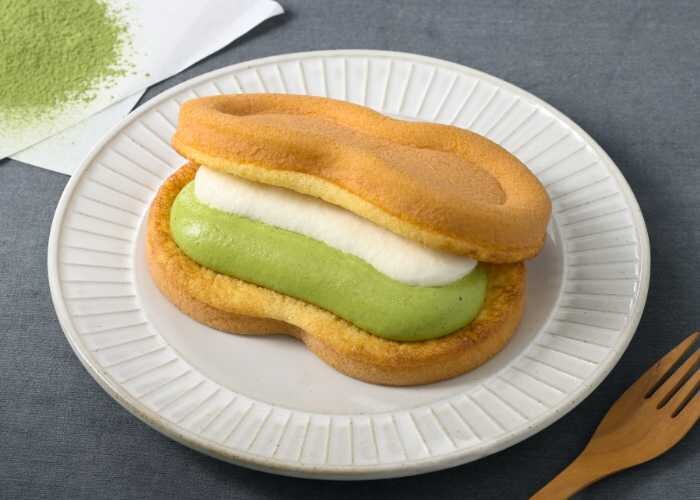 抹茶カスタード入りスポンジに、なめらかな抹茶クリームをたっぷり絞った一品で、やさしい甘さとしっかりした抹茶の風味を楽しめます。