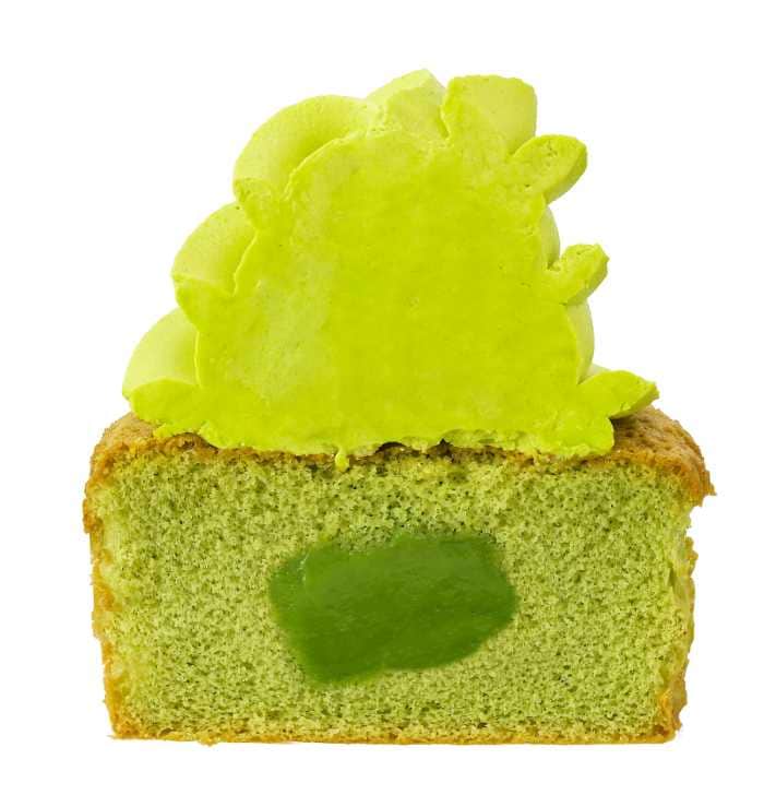 濃厚な抹茶カスタード入りスポンジの上に、まろやかな抹茶チーズクリームを重ね、さらにクリームチーズと白あんを合わせた抹茶チーズあんをトッピング。