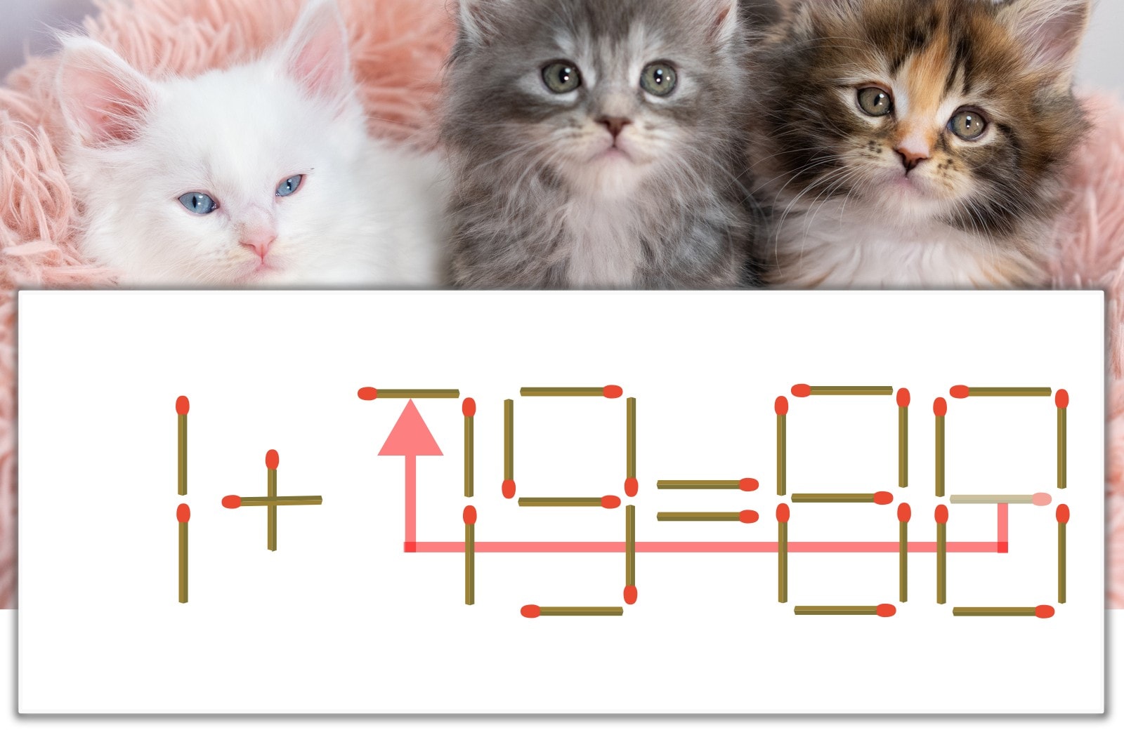 【問題】マッチ棒を1本動かして式を正しくしてください。