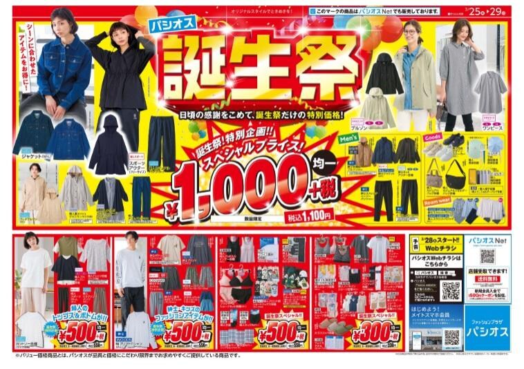 ファッションプラザ「パシオス」は、2026年3月25日から29日まで「誕生祭」を開催しています。