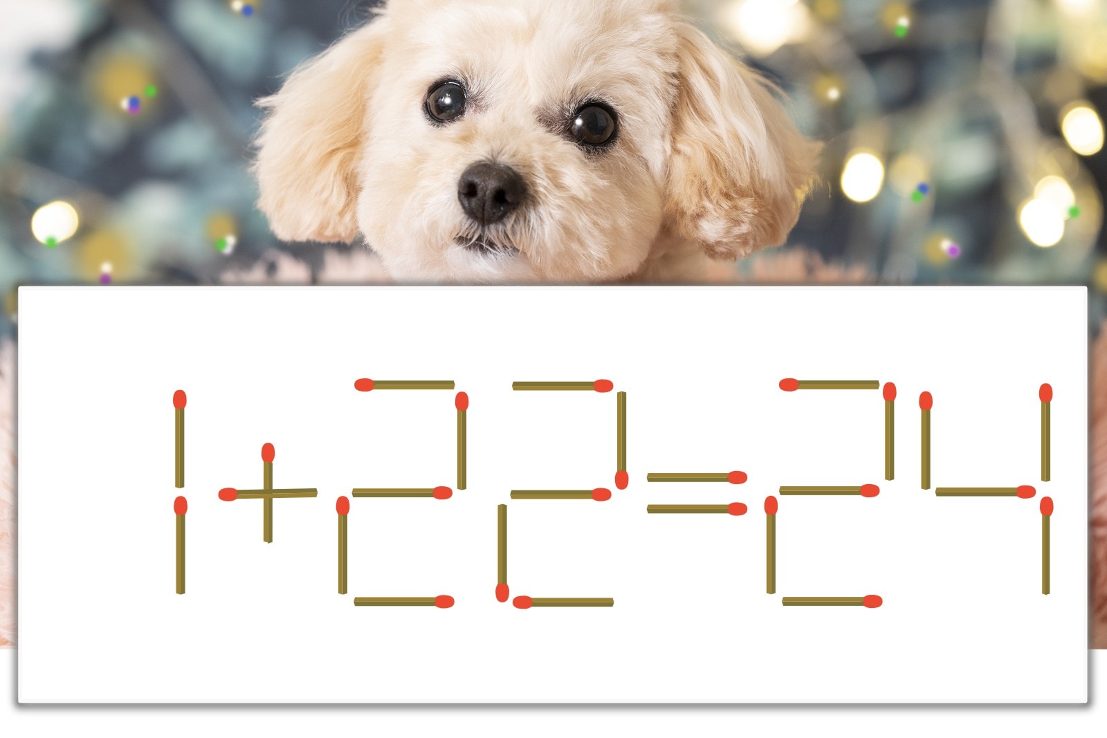 「2」のマッチ棒を1本、右にスライドさせて「3」を作り、「1+23=24」にする。※解答は複数ある場合があります。