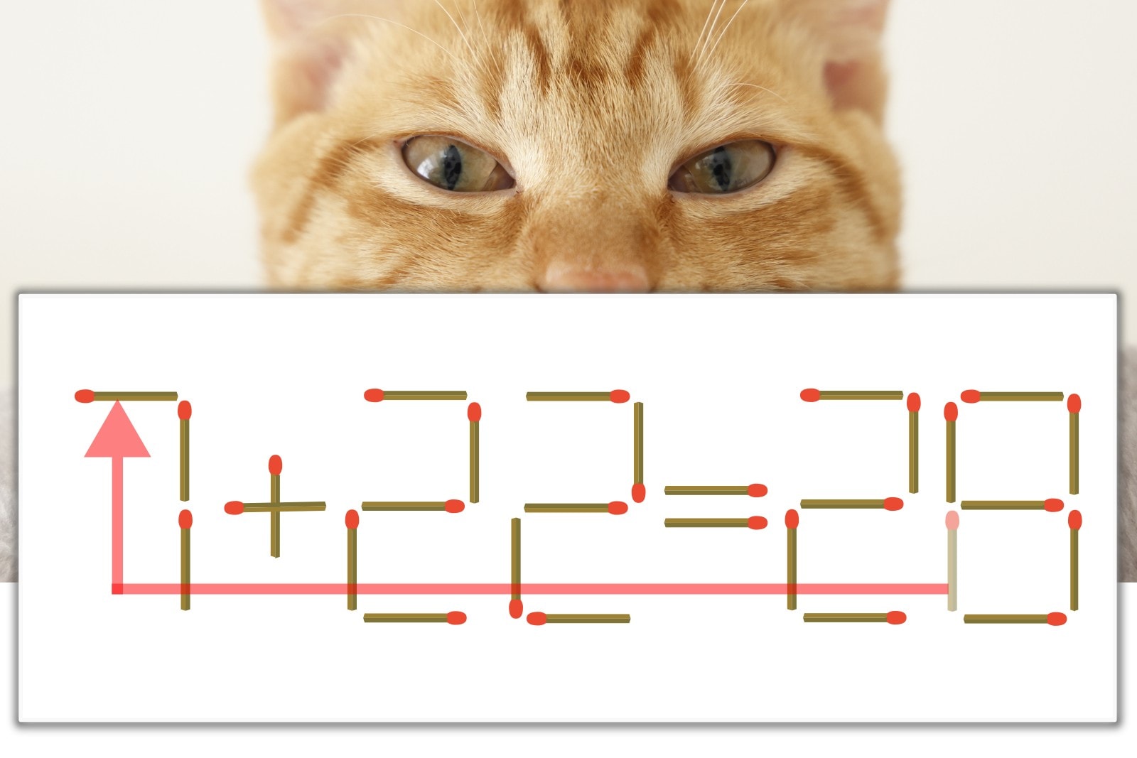 【問題】マッチ棒を1本動かして式を正しくしてください。