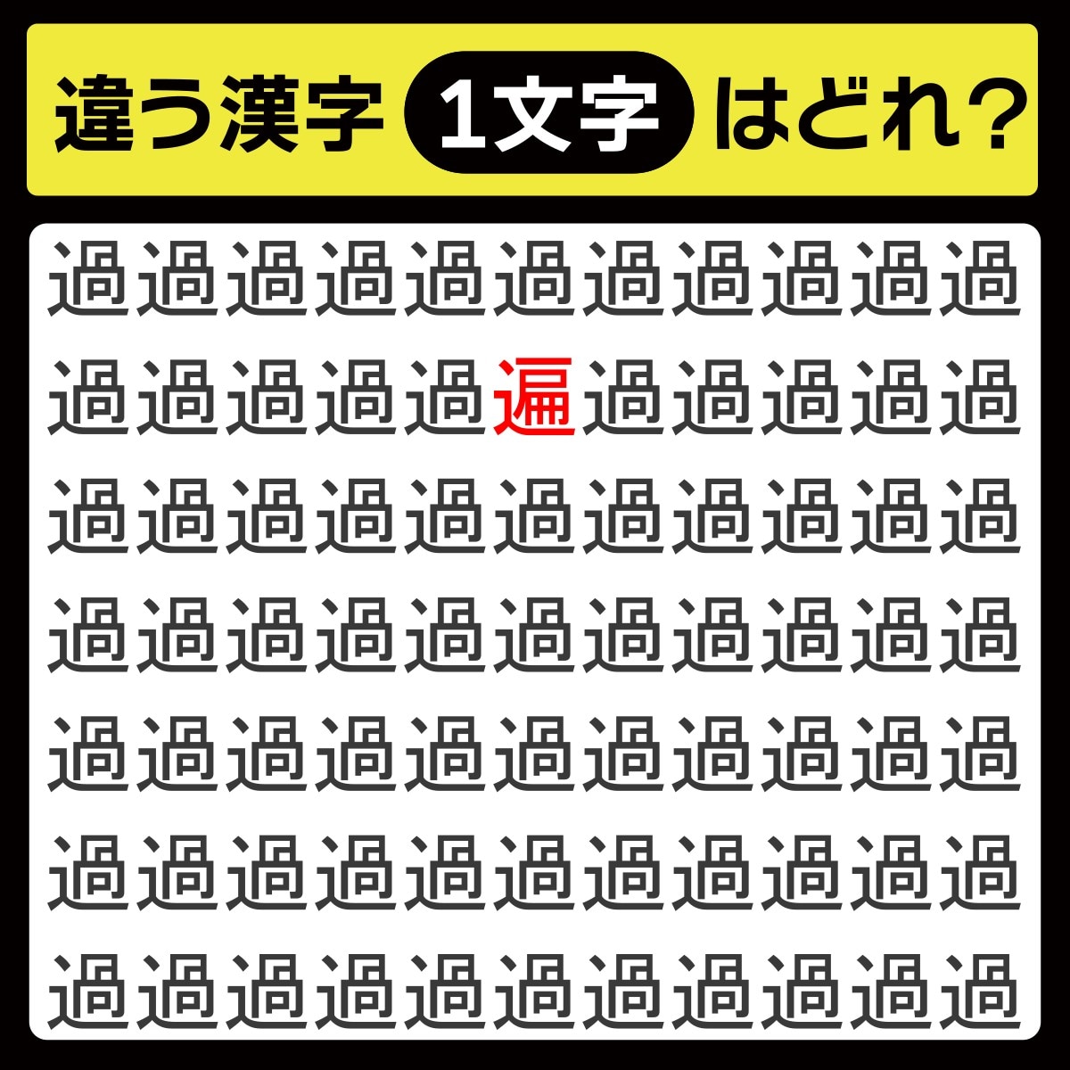 違う漢字は、上から2行目、左から6番目の文字でした!