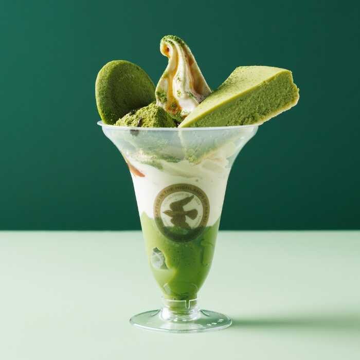 抹茶ババロアやチーズケーキソフト、わらび餅などを重ねた贅沢パフェ。多彩な食感と味わいが楽しめます。