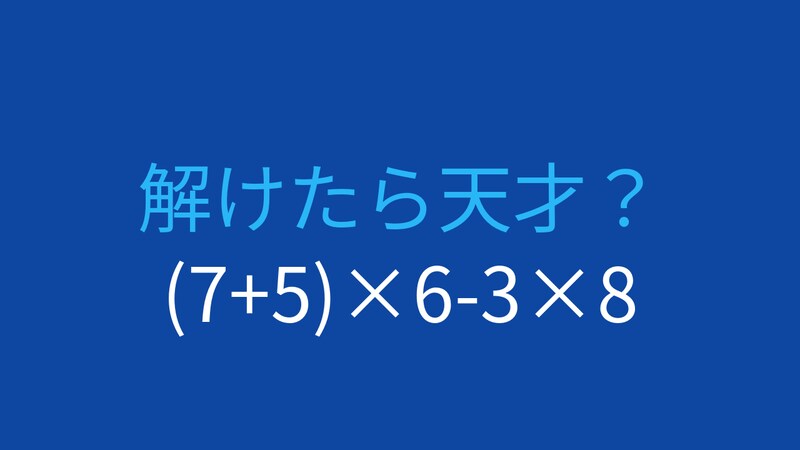 100から始まるスッキリした式ですが、掛け算・割り算の優先順位を見落とすと間違えやすい問題です。引き算を先にしてしまう人が続出!
