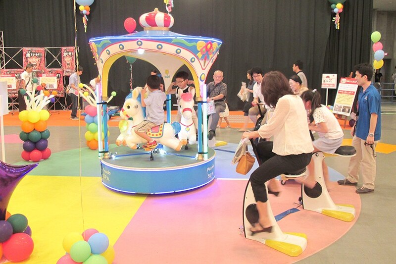 遊びを通じてエネルギーの大切さや地域交流を親子で楽しみながら体感できる場である「クラッセちびっこ遊園地」には、2つのアトラクションがスタンバイ。最大4人が乗車可能な「ミニSL」は4台(大人用・こども用)で、最大2人が乗車可能な「メリーゴーランド」は3台のエアロバイクによる人力発電で動かすことができます。
