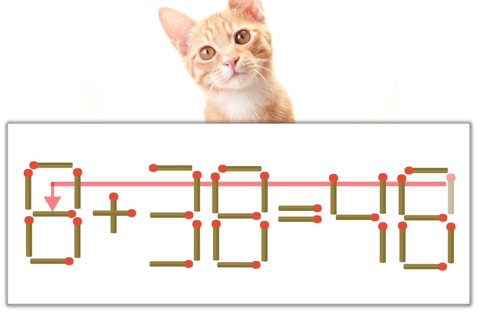 「8」のマッチ棒を1本、左にスライドさせて「8」を作り、「8+38=46」にする。※解答は複数ある場合があります。