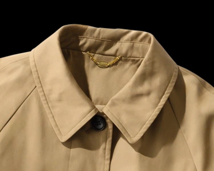 プレス・赤澤美衣奈さん「ケープは取りはずしできる2way仕様になっています。シンプルなショートトレンチとして着るのもオススメで、えりの裏側のタブをとめれば、スタンドカラーとしてのアレンジも!」