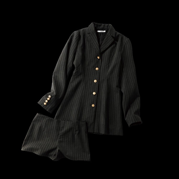プレス・須田ももかさん「ウエストシェイプしたシルエットのジャケットは、自然とスタイルアップして見えるバランスに。ヘッドスカーフをつけることで、主役級なスタイリングが楽しめます」