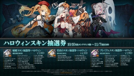 「10月10日(金)メンテナンス後」より、様々なハロウィンスキンが入手できる「ハロウィンスキン抽選券」を期間限定で3種類発売いたします。