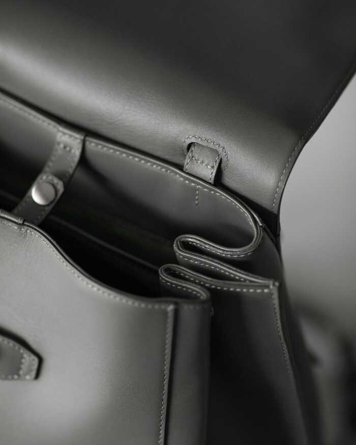 さらに内装のホック付きベルトで形状をキープし、美しいフォルムを保てるのもポイントです。