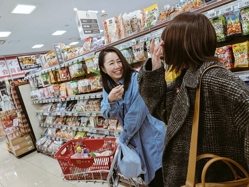 実際にスーパーで、どの食材を買うか話している2人。