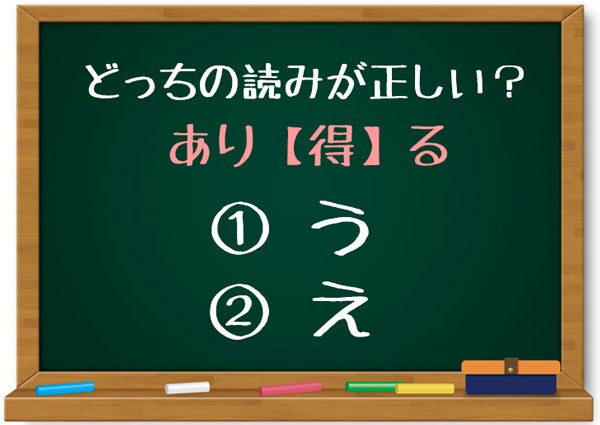 【答】 う「ありえる」という読み方も広まっていますが、元々の読み方は「ありうる」。文語の「ありう」からこのような読み方をします。