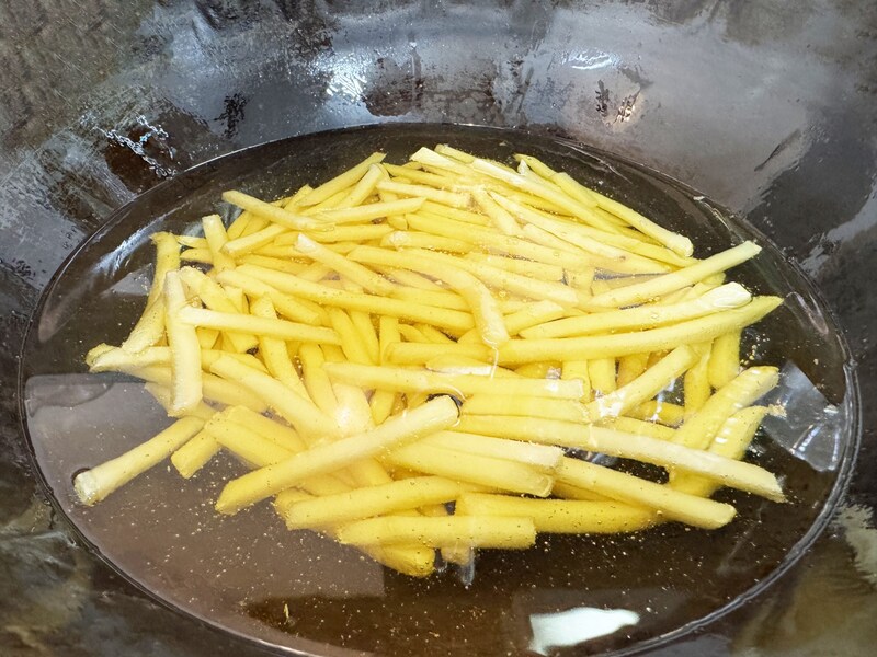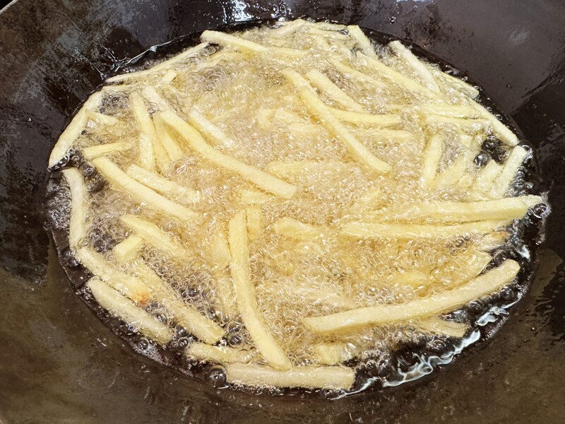 冷凍フライドポテトを美味しく揚げる「冷油起動昇温黄金裂揚法」