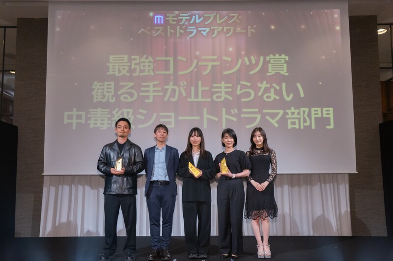 (C)「モデルプレス ベストドラマアワード」授賞式写真左から)荒井俊雄プロデューサー、倉地雄大プロデューサー、井上穂乃香プロデューサー、小林杏奈プロデューサー、寺田御子さん