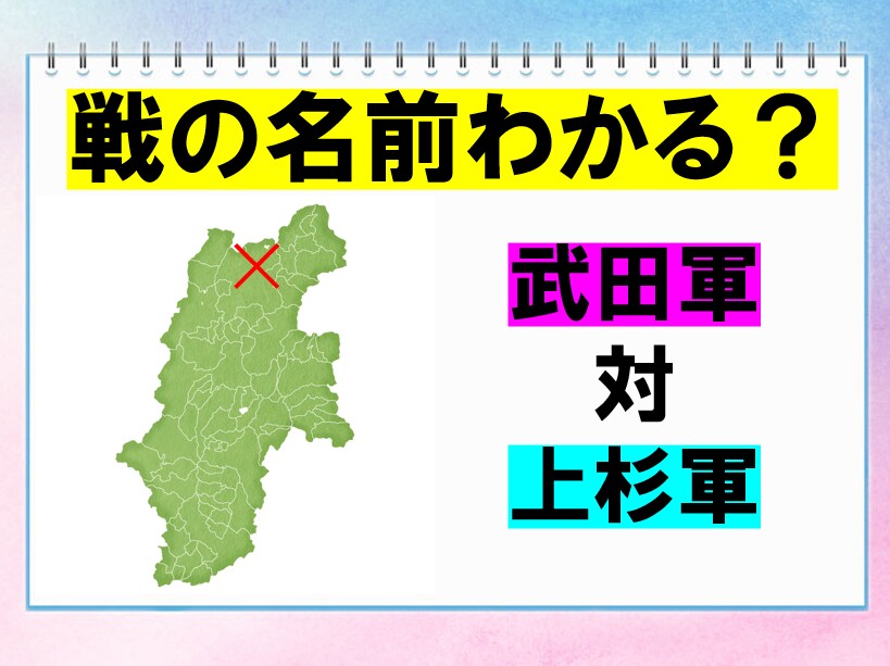 【答】 川中島の戦い川中島の戦いは、計5回、12年余りに及びます。実際に「川中島」で戦闘が行われたのは、第二次と第四次のみで、一般に川中島の戦いと言った場合、最大の激戦であった第四次合戦を指すことが多い。