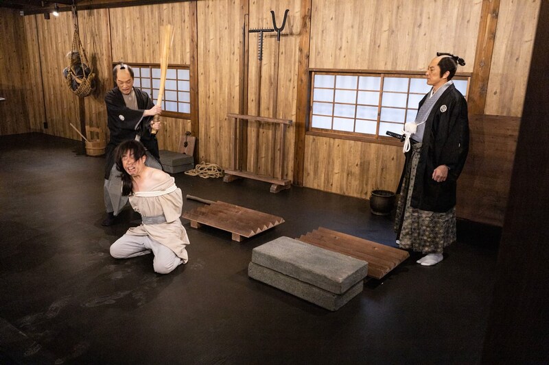 夜限定イベントの2つめは「大人しか入れない拷問屋敷」。美術スタッフが再現した拷問器具の数々はおどろおどろしい雰囲気です。約20分の拷問体験のショーは出入りは自由で、来場者が拷問器具を体験することもあり……!?