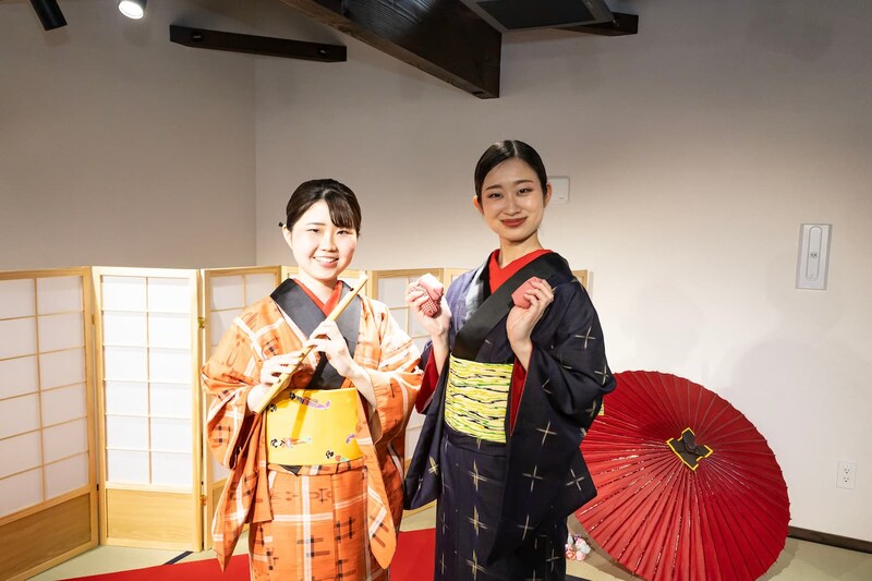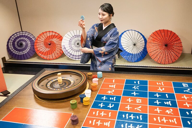金運占い、恋愛占い、さらに京のおみくじを使ったいけず占いの3つを体験できるのが「京花占い」。金運は和風ルーレットを使用し、スタッフが演技で盛り上げてくれます。また、リニューアルにあたって、華道や茶道、能、狂言、お囃子、京舞、三味線などの本格的な文化体験(各2,700円)もスタート。ほかにも着物体験として本格的な時代劇の扮装や和装のレンタルなども行われます。