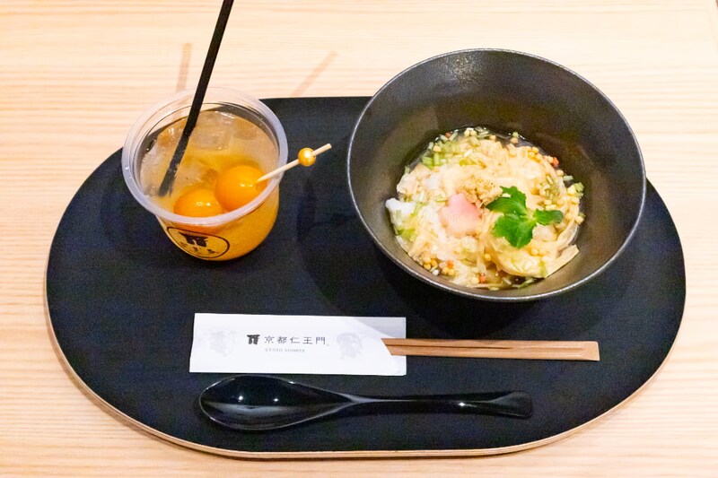 「茶寮 京都仁王門 ござる。」は人気の「湯葉のあんかけどんぶり」のほか、「金柑ソーダ」などの甘味も提供されます。