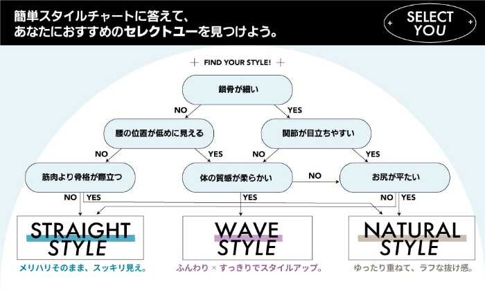 「SELECT YOU」は15,400円~15,950円(税込)。サイズはS・M・L・XLの4サイズ展開で、幅広い体型に対応しています。