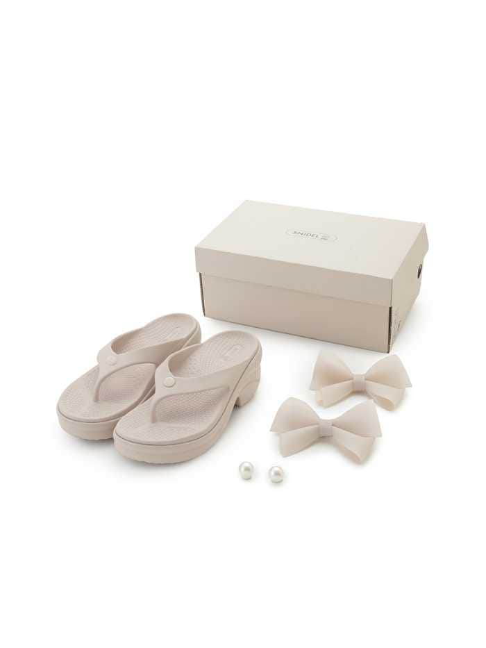 取り外し可能なオリジナルリボンやパールパーツ付きで、気分やコーデに合わせてアレンジが楽しめます。さらに、インソールには“SNIDEL”のロゴを施し、コラボならではの特別感をプラス。
