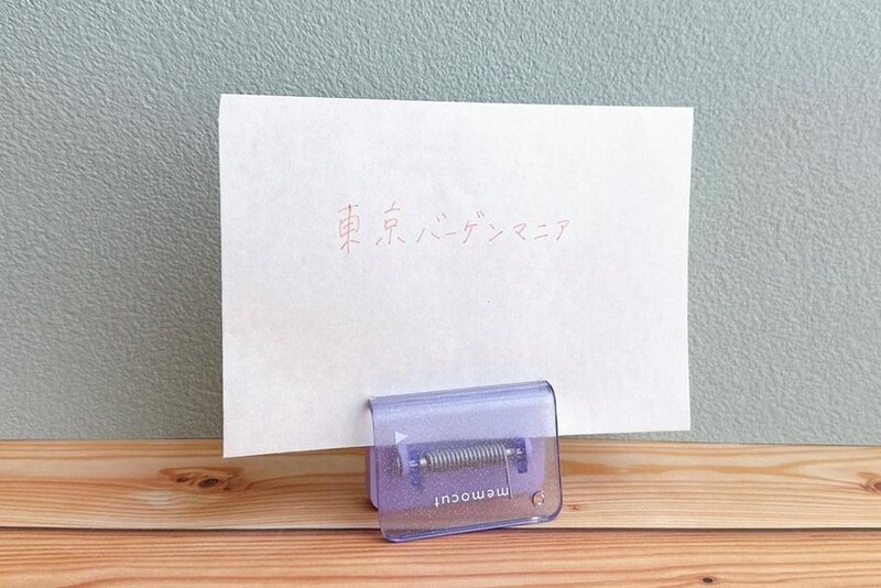 「カッターつきクリップ メモカット」をひっくり返せば自立するので、さまざまな使い道があります。