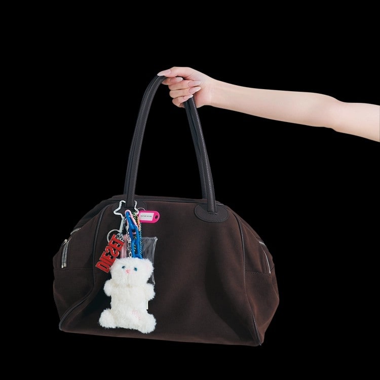 マチが広いから荷物を詰め込んでも形が崩れにくい!シンプルなバッグも自分らしさ全開のたっぷりチャームで今っぽくアップデート♡