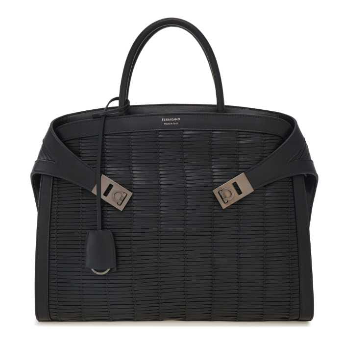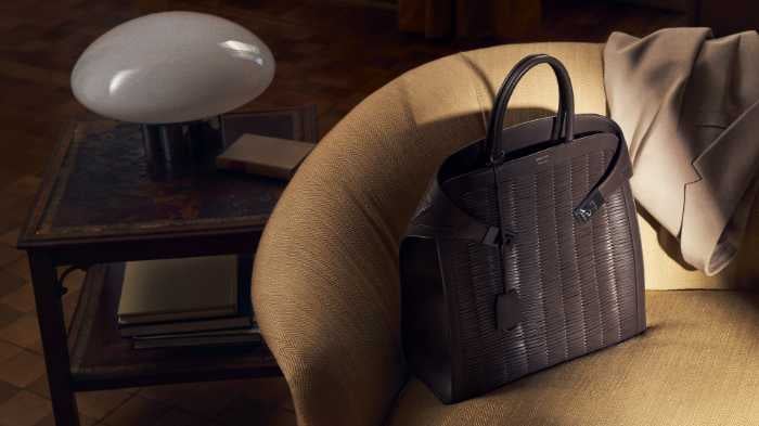 ウィメンズには、パテントレザーを使用したワンショルダーバッグ、メンズにはカーフスキンを編み込んだブリーフケースがラインアップ。