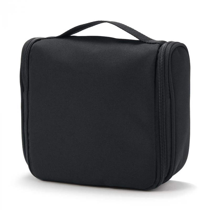 ケースを広げてフックに吊るせる洗面ポーチは、ズボラさんにぴったり。ボトルを立てたまま持ち運べるので、日常のスキンケアを旅先でも変わらず行えます。