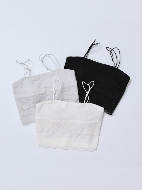 繊細なレースをティアードに重ねた立体感のあるベアトップ。インナーでありながらも主役級の存在感を放ち、胸元を華やかに演出。