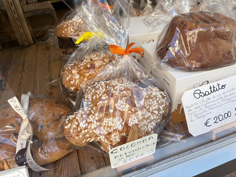 パン屋さんやケーキ屋さんのウィンドウには、手作りのコロンバ、スーパーやカフェの一角には量産されている手ごろな値段のコロンバが並んでいます。