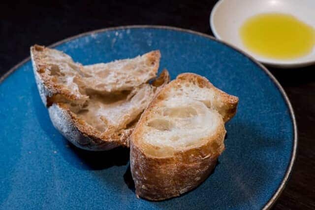 パンは世田谷の名店として全国に知られたブーランジェリー『シニフィアン シニフィエ』のバケットとカンパーニュ。バゲットは皮がパリパリで中はふっくら。小麦の風味が引き立つ料理を邪魔しない味で、お代わりをしてしまいました。