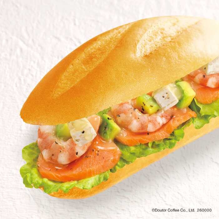 「爽やかレモン ミラノサンドB スモークサーモン・エビ・アボカド」は590円(税込)。スモークサーモンとエビ、アボカドの組み合わせにレモンソースが爽やかに香ります。