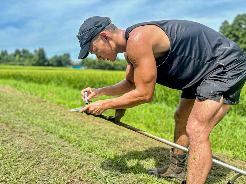 加入2年目の片岡選手も、東京・池袋でのデスクワーク時代とのギャップに衝撃を受けた一人だ。 「僕は元々、暑いのが苦手なんです(笑)。東京で働いていた頃は空調の効いたオフィスにいましたから。大多喜に来て最初の夏、炎天下での作業は本当にキツかった。何度も熱中症になりかけましたし、心が折れそうになったこともあります」