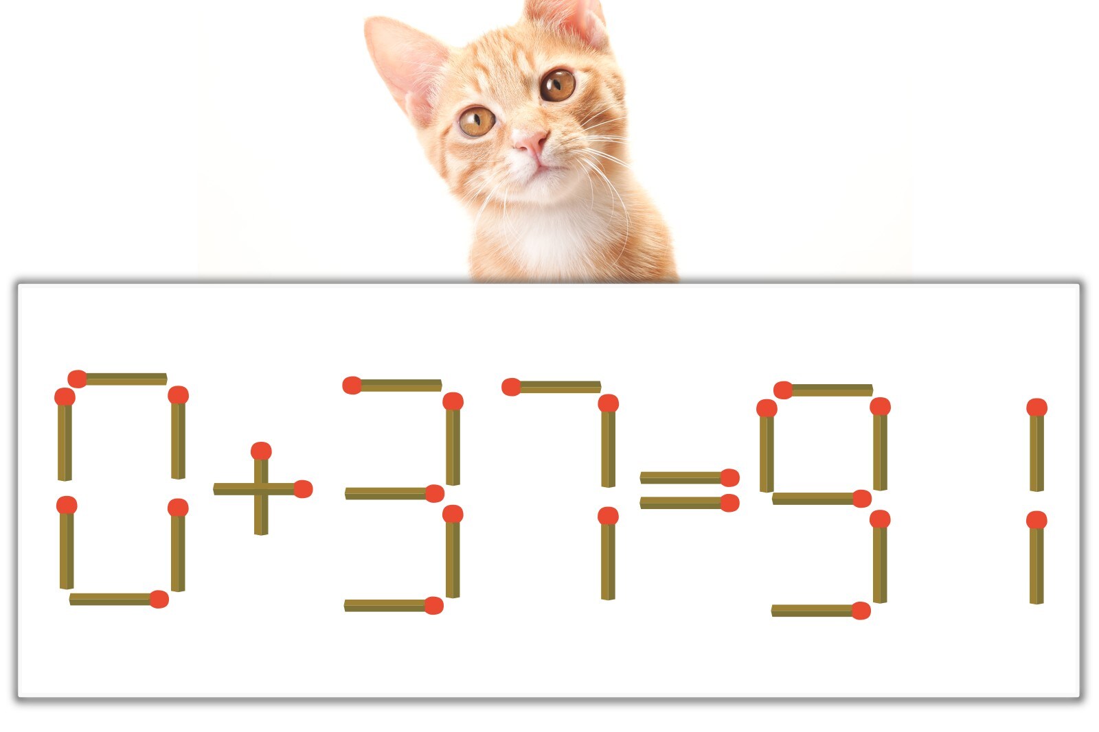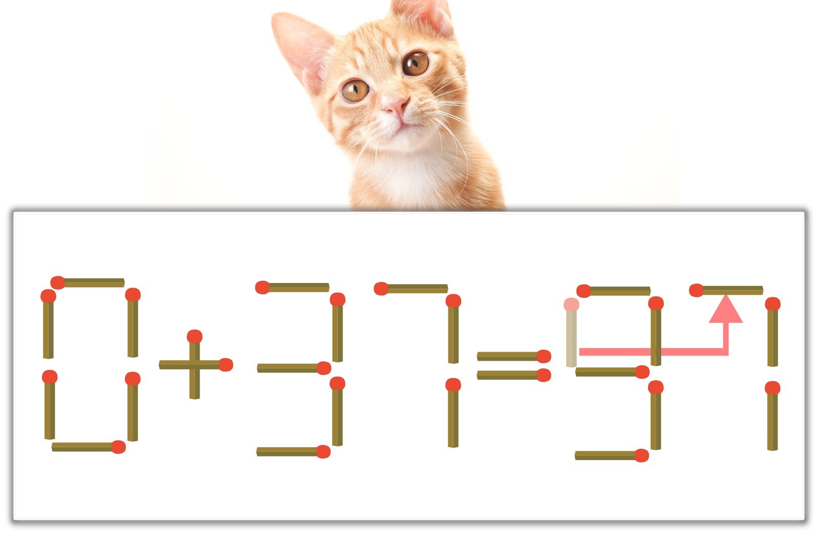 「9」のマッチ棒を1本、右にスライドさせて「7」を作り、「0+37=37」にする。※解答は複数ある場合があります。