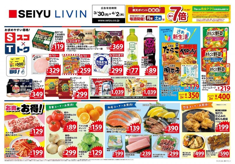 スーパーの「西友」は、2026年3月30日から4月2日までの期間を対象にしたチラシを公開中です。