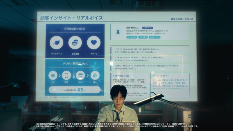 「どれだけ自分を超えてもらえるのか。そこがちゃんと伝わるような内容なんじゃないかなと思います。自分が作った資料を使ってクライアントの方にプレゼンするシーンを撮った時(画面投影されている資料のクオリティが)素人から見てもひどいのが分かって少し面白かったです(笑)」