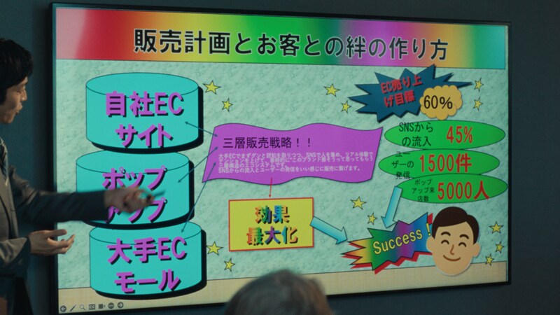 途中まで完璧なプレゼンをこなしていたものの、画面に投影されたあまりにもクオリティの低いデザインの資料に、商談は失敗に終わってしまいます。