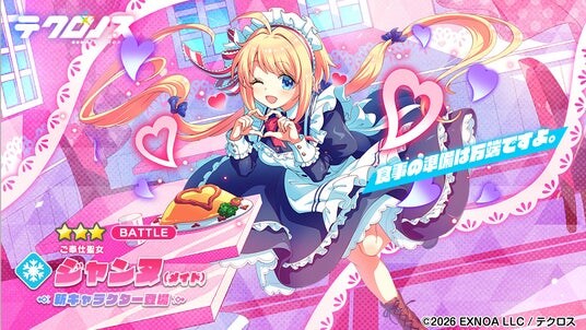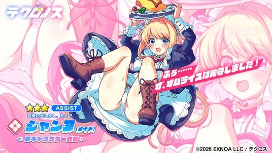 合同会社EXNOA(本社:東京都港区、CEO:東條 寛、URL:https://games.dmm.com)と株式会社テクロス(本社:京都府京都市右京区、代表:辻 拓也、URL:https://techcross.co.jp)は、4つの刻が交差するクロスヒロインRPG『テクロノス』(https://techcronoss.com)にて、メイド服姿の「ジャンヌ」が登場!あわせて、季節限定イベント「メイド・イン・ドリィミア」を開催します!