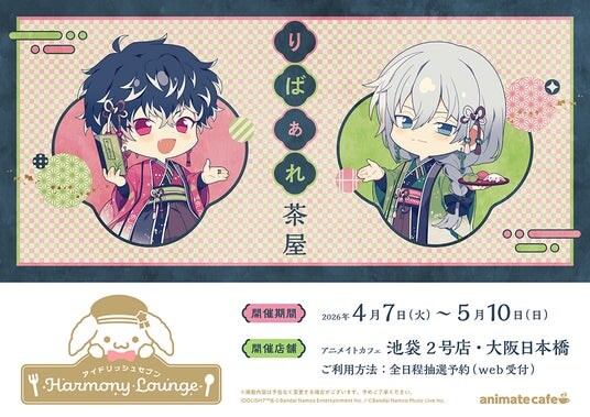 「アイドリッシュセブン Harmony Lounge」第3弾は、Re:valeがプロデュースした和食レストラン「りばぁれ茶屋」が登場。2026年4月7日~2026年5月10日まで開催いたします。