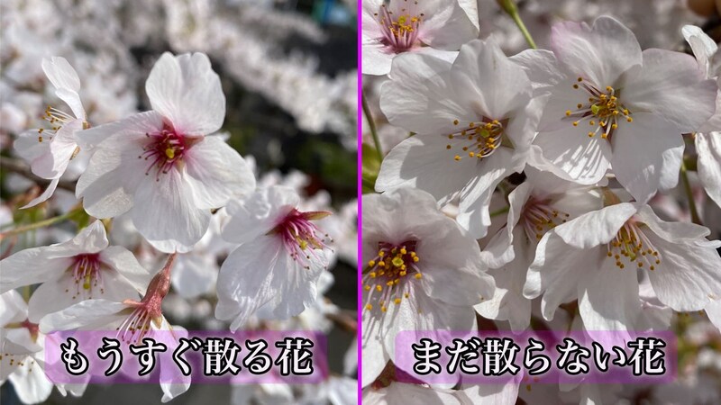 また、ソメイヨシノは花びらの色でも状態が分かります。