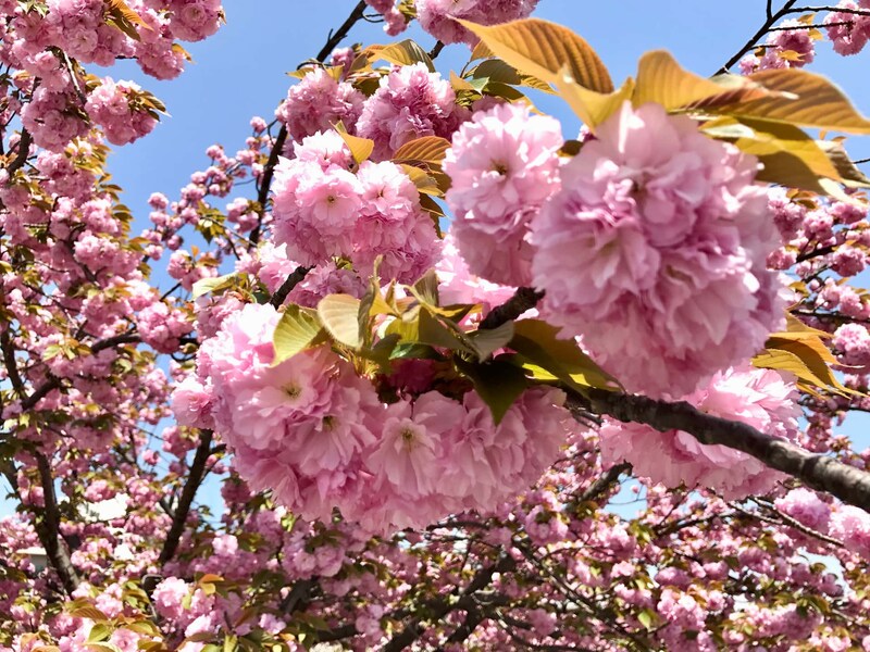 さらに、4月中旬になると遅咲きの八重桜が見頃に。花びらの数が多く、ふんわりとした華やかさがあり、ソメイヨシノとはまた違った魅力を楽しめます。