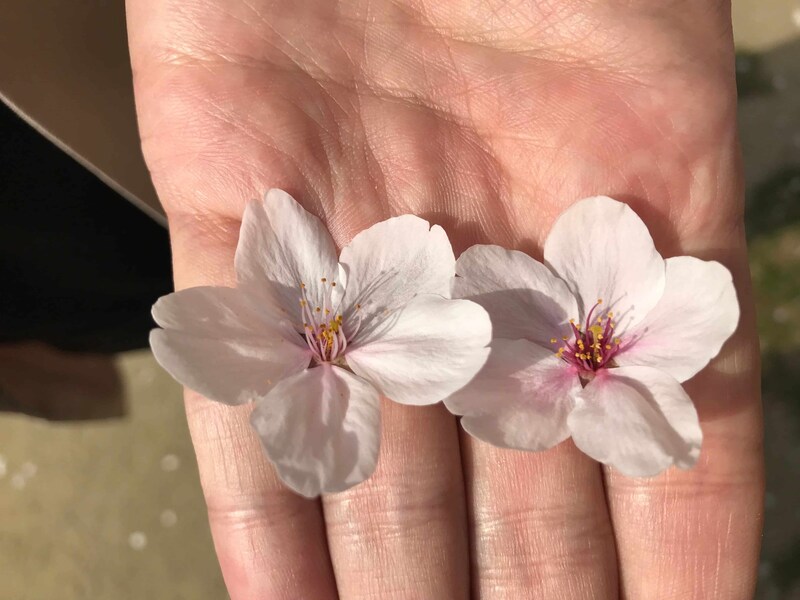 咲き始めは花全体が白く、満開を過ぎ散り際にかけては中心部分からピンク色が濃くなります。お花見のタイミングを見極めるヒントにしてみてください。